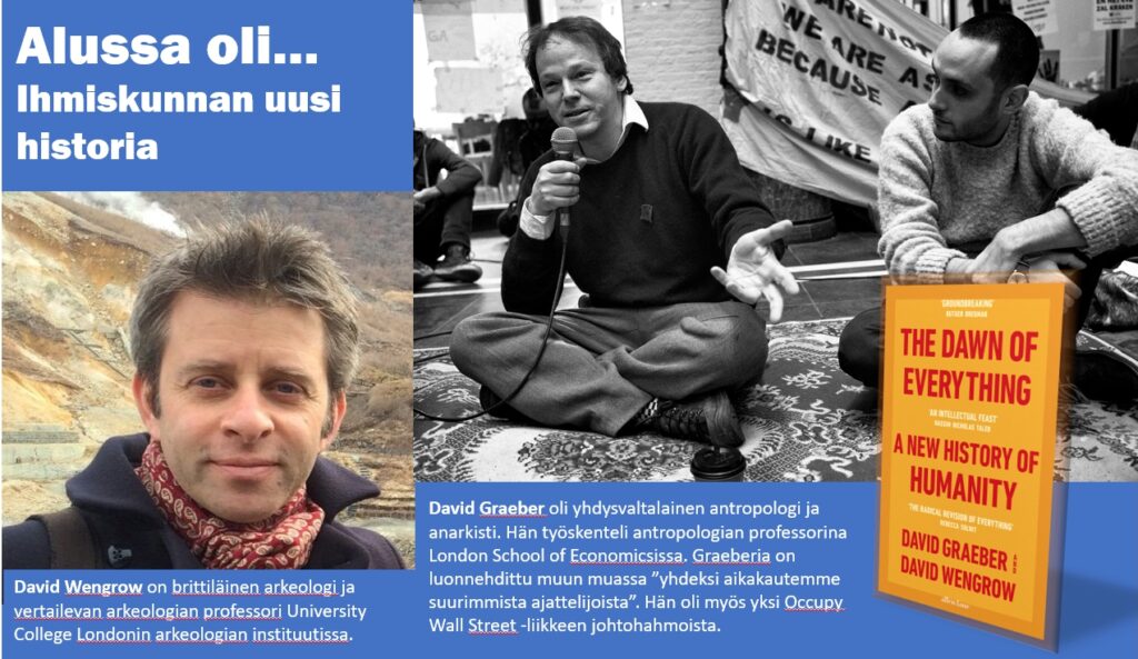 Samassa tapaamisessa myös “Kysymyksiä ja vastauksia“, joissa esitellään Pertti Koskelan toukokuussa 2022 ilmestynyttä teosta “Ihmissuvun, yhteiskunnan ja ihmisen synty – ehdotus ihmiskunnan uudeksi historiaksi, osa 1“. The Dawn of Everything -kirjan sisällöstä oli hyvä referaatti Helsingin Sanomissa 18.12.2021. Heli Santavuoren alustava puheenvuoro Uusi historia -yhdistyksen keskustelutapaamisessa 18.7.2022. David Graeberin ja David Wengrow’n kirjaa The […]