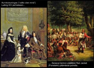 1600- ja 1700-luku, jolloin tapahtui kohtaamisia eurooppalaisten ja Amerikan alkuperäiskansojen kesken, oli siirtomaavaltojen kulta-aikaa mutta samalla myös valistusaikaa. Eurooppalaiset alkoivat saada tietoa toisenlaisista yhteiskunnista, kansoista ja elämäntavoista, mikä kiehtoi tavattomasti mieliä. Mutta nuo toiset näyttivät myös “alkukantaisilta” teollistuvan Euroopan yläluokkien silmissä, ja totta kai tuota havaintoa on käytetty myös eurooppakeskeisten ja rasististen asenteiden pönkittämiseen.